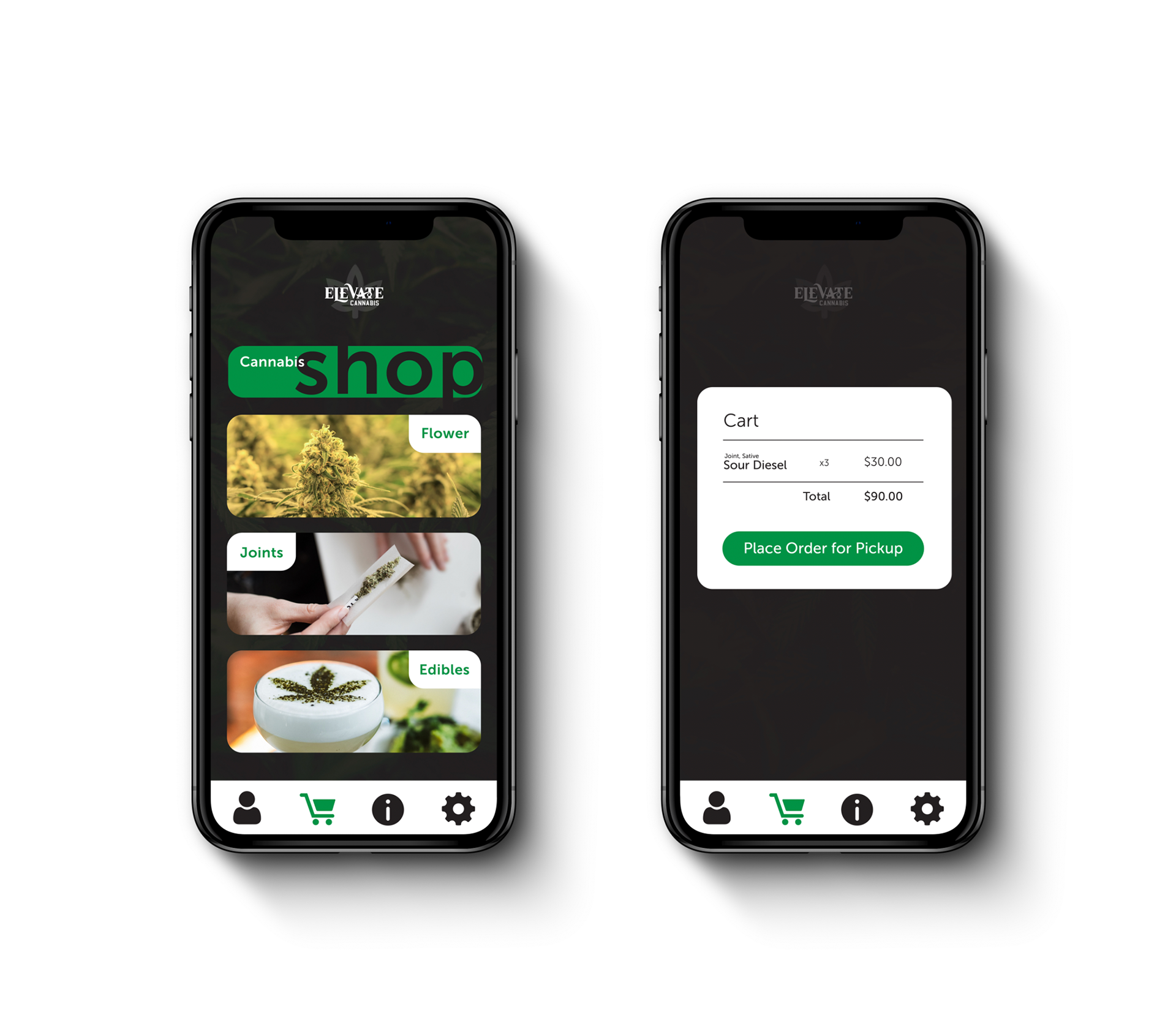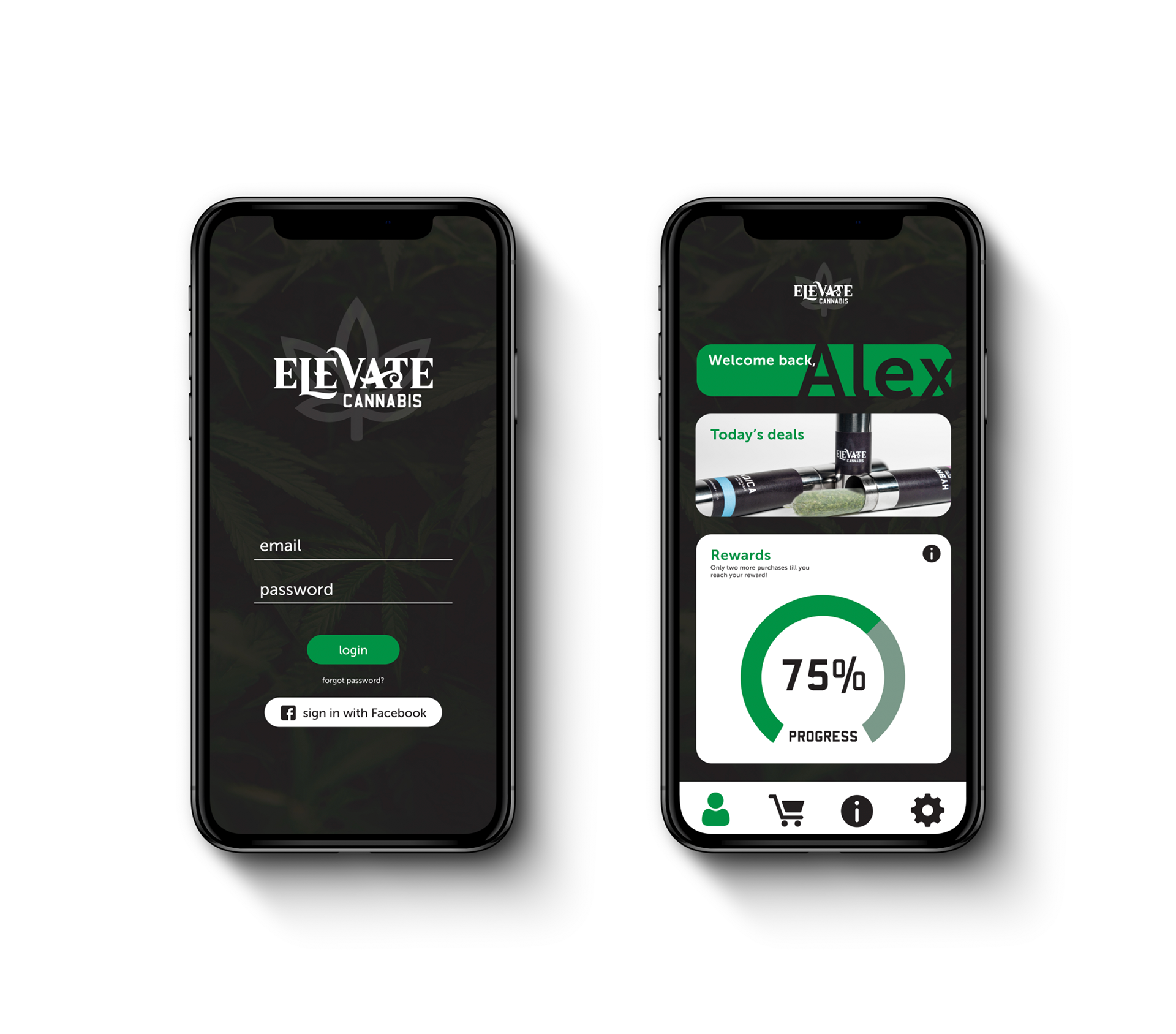 Elevate Cannabis is a hypothetical company that was for a school project. The project includes: logo, packaging and app design.